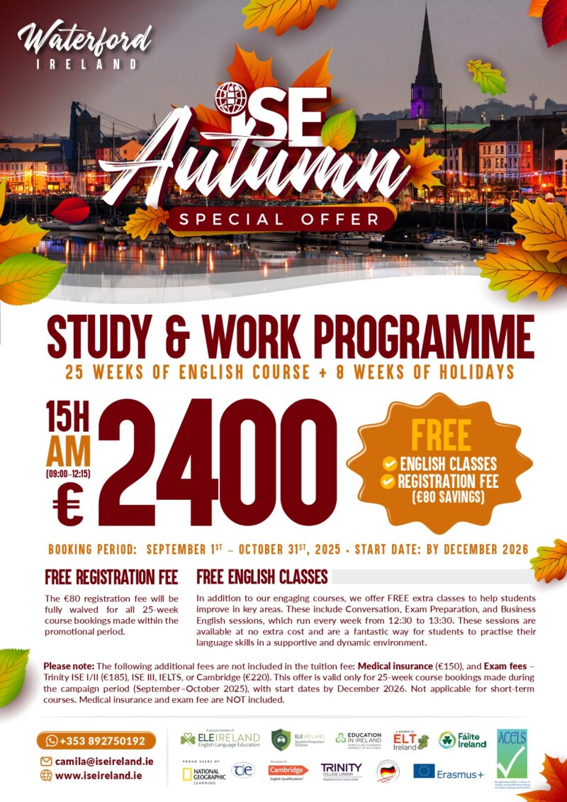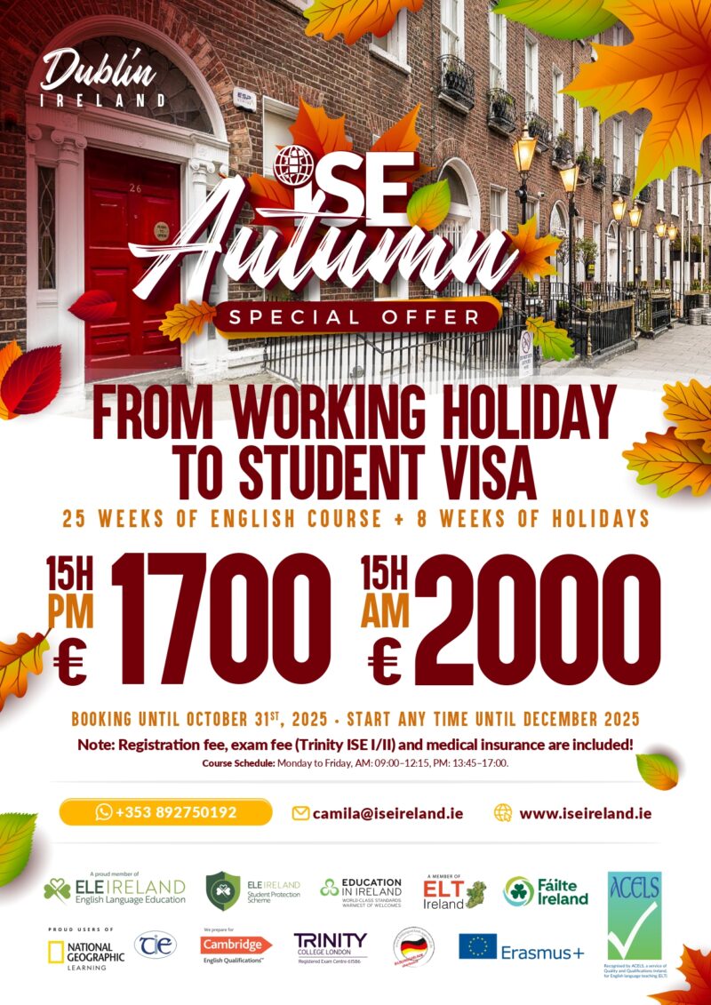 8ヵ月滞在可能なビザです。25週間語学学校でアカデミックイヤーコースを受講し英語を学び、8週間のホリデーでアイルランドやヨーロッパを旅行できます!